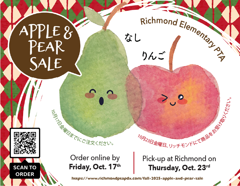 Proceeds from this sale benefit the Richmond PTA’s wonderful programming, so buy some delicious fruit for pies, applesauce, lunches, and just plain good eating!